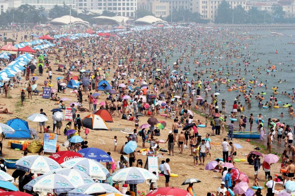 Playa de Fujiazhuang en Dalian, China. La más concurrida del mundo