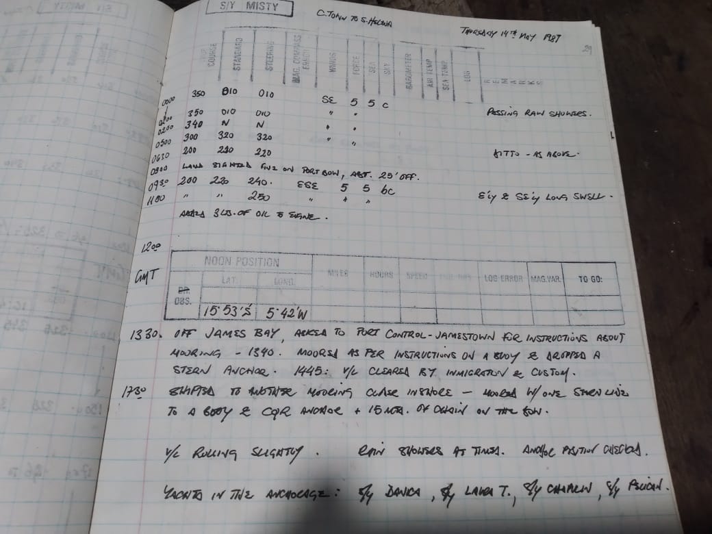 Pasaremos diez días al ancla frente a Jamestown, la capital y único poblado de la isla. Nos encontramos allí con cuatro veleros que habían zarpado de Ciudad del Cabo poco antes que nosotros. La isla es notable y una descripción tomaría demasiado espacio. La parte inferior de la isla (que no tiene playas) es volcánica y muy seca, mientras que por encima de los 400 metros está completamente cubierta de vegetación. La isla tiene 5 mil habitantes ¡y más de un millar de autos!*** Nada mal para una isla que no produce nada más que algunas toneladas de atún enlatado. La gente es increíblemente gentil. Naturalmente visitamos la tumba y la casa de Napoleón en Longwood, que es territorio francés.